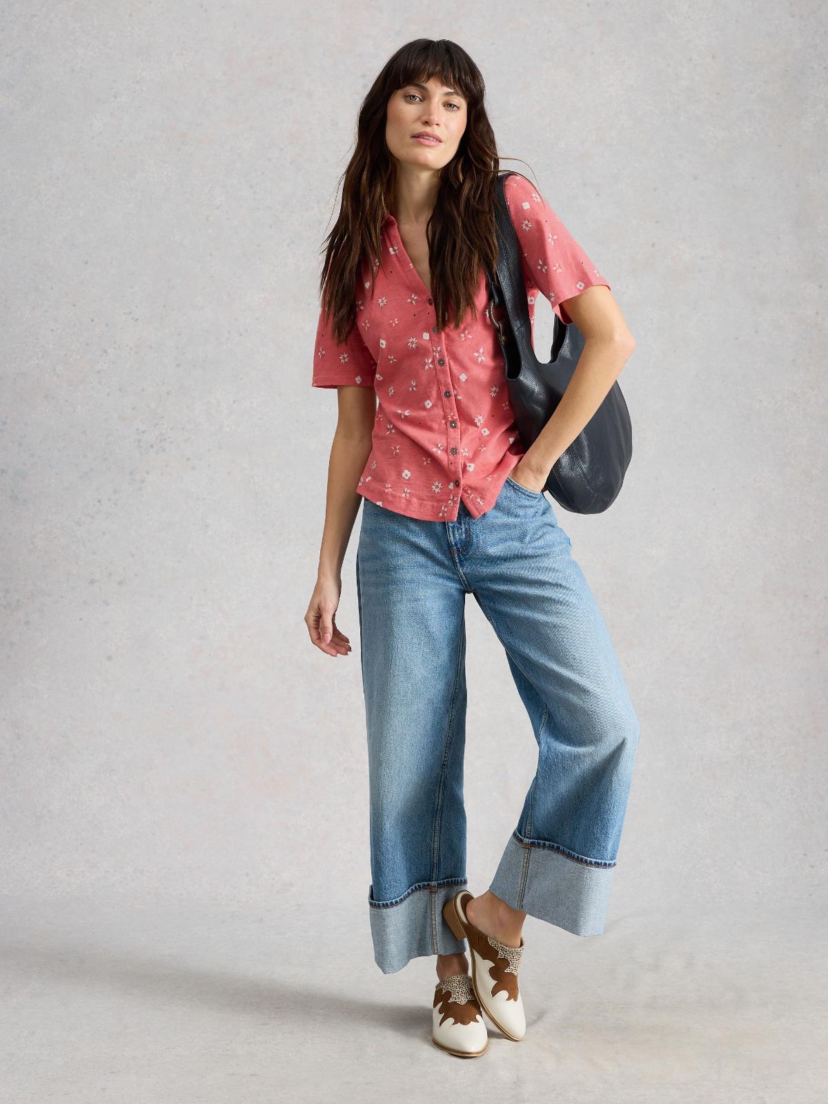Ľahká žerzejová košeľa s jemným kvetinovým vzorom, vhodná na letné dni. Fairtrade bavlna poskytuje príjemný pocit na pokožke a pohodlie pri nosení.