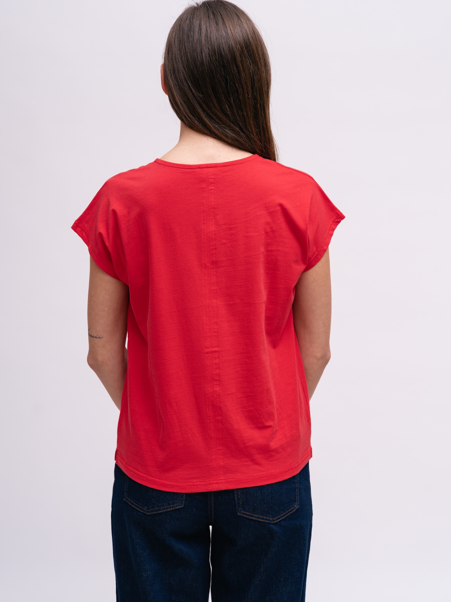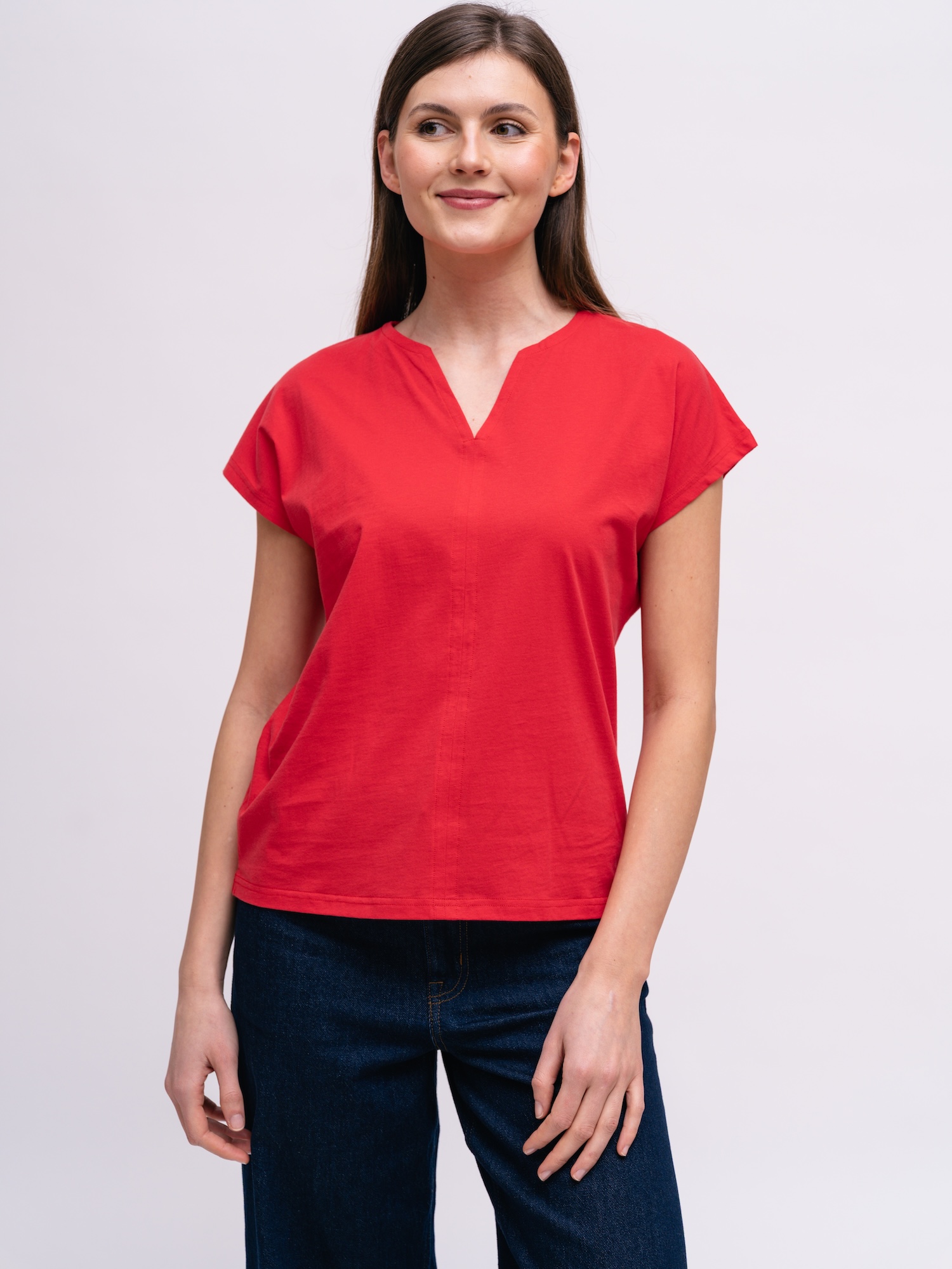 Top s jemným vykrojením pôsobí jednoducho a žensky. Rovný strih príjemne padne, ideálny na bežné dni.