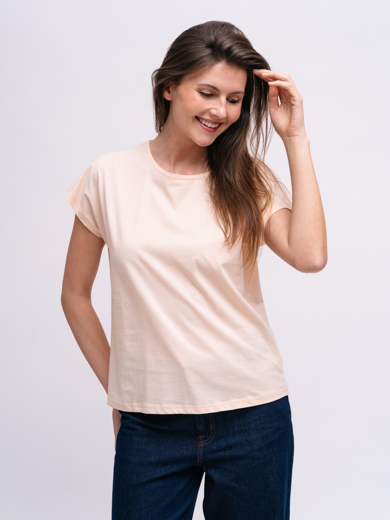 Jemný pudrový odtieň s čistým strihom pôsobí decentne. Vhodné na jar aj na vrstvenie počas prechodného obdobia.