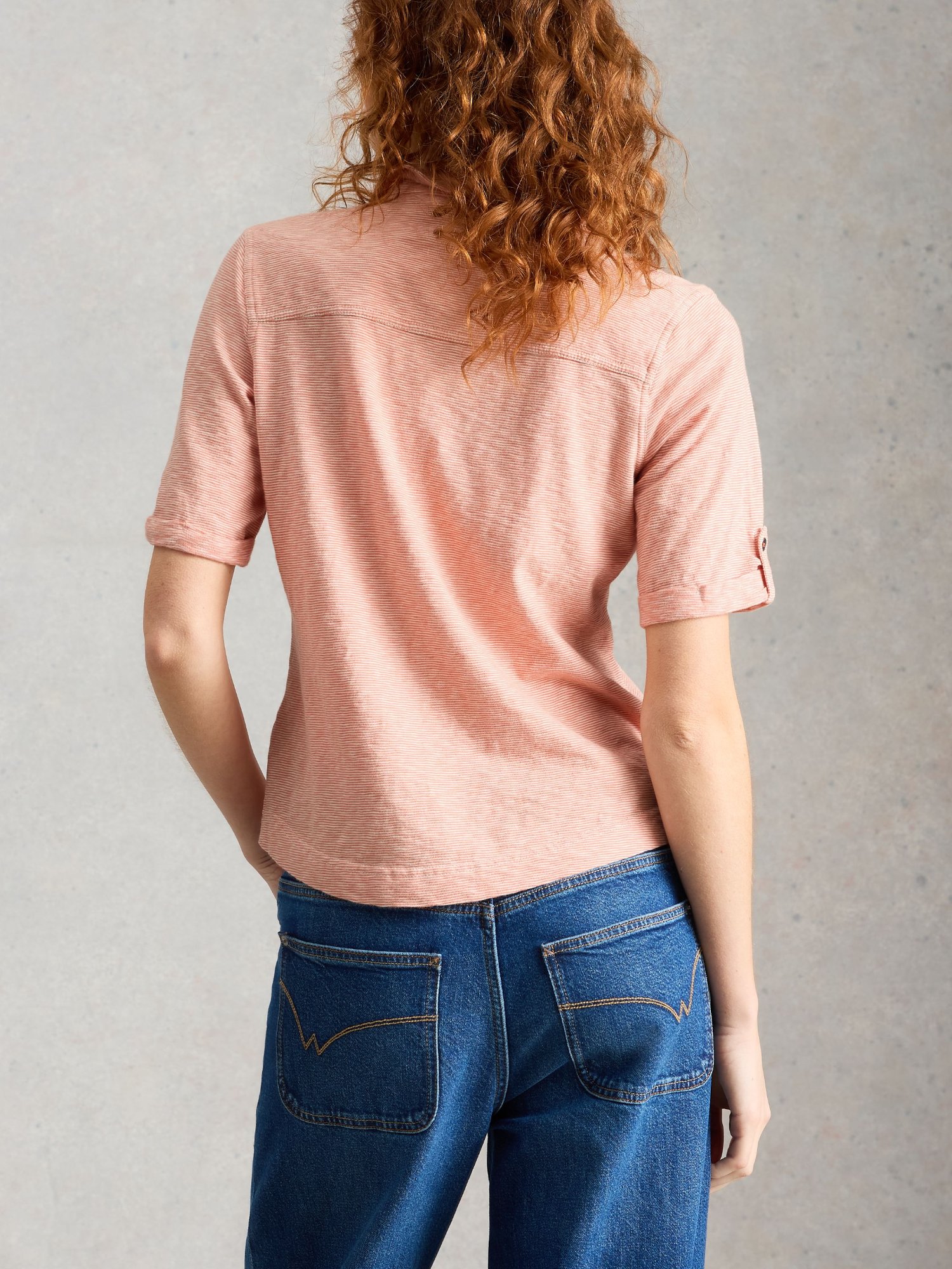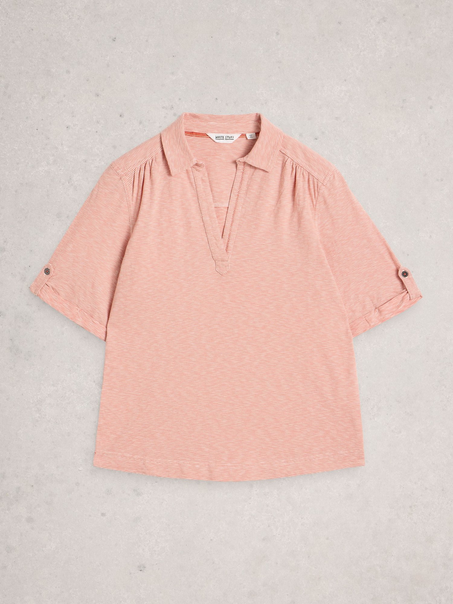 Krátky oranžový top s jemnými pásikmi a pololímcom pôsobí sviežo. Ľahko sa oblieka cez hlavu a ladí k džínsom aj sukniam.