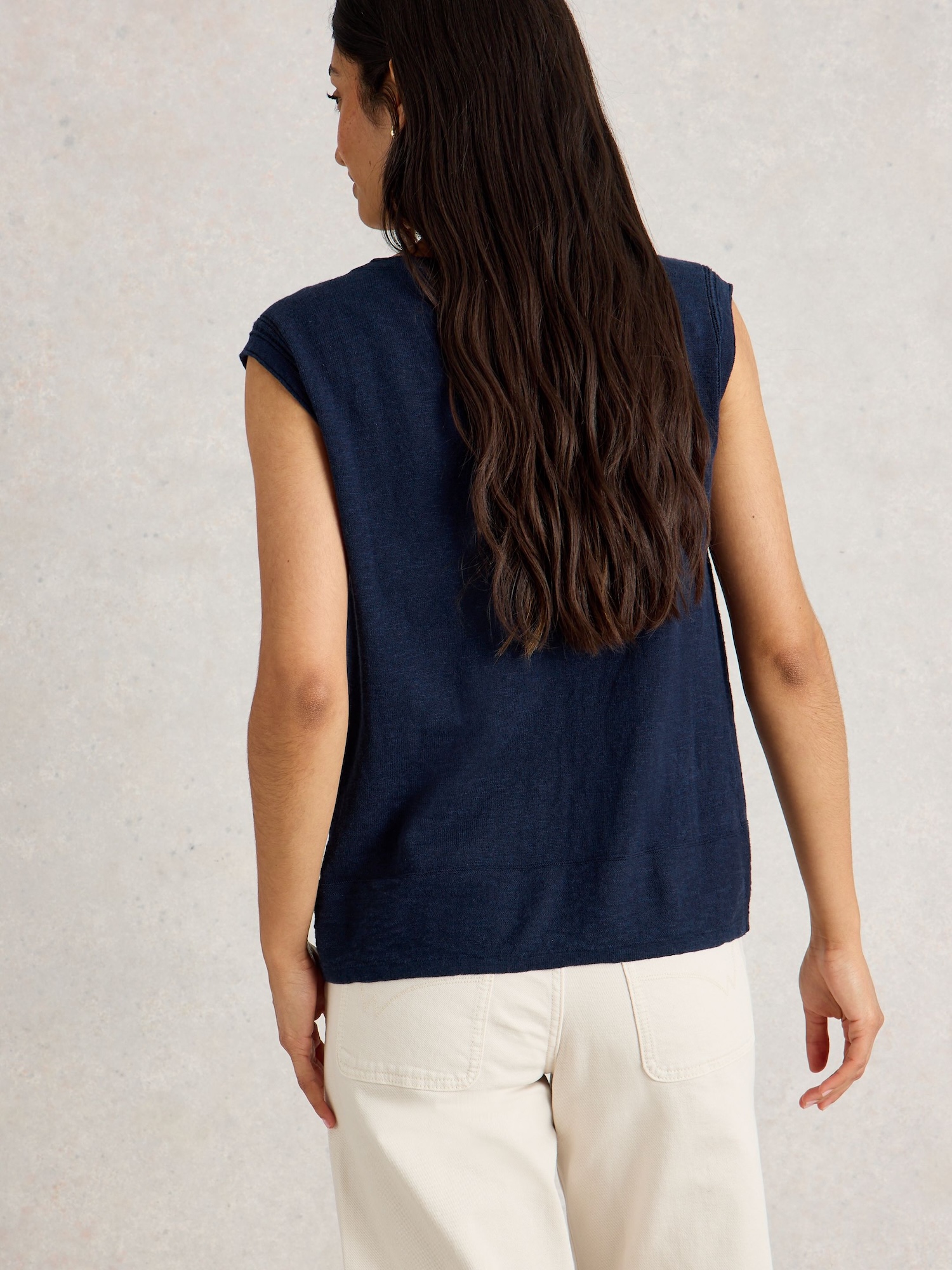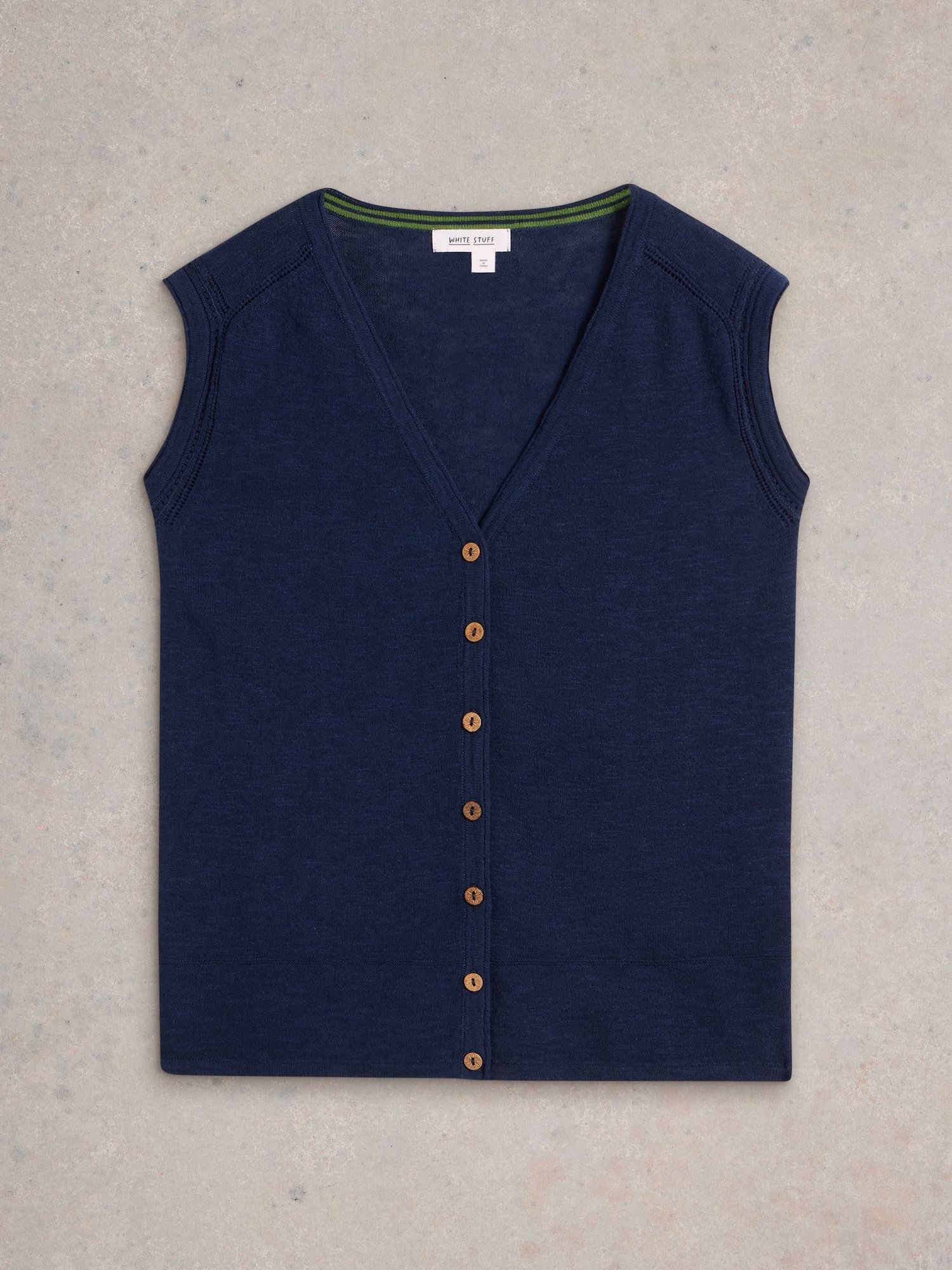 Ľahká pletená vesta s výstrihom do V prináša čistý, nenútený vzhľad. Skvelo sa nosí cez tričko alebo letné šaty do mesta aj do práce.